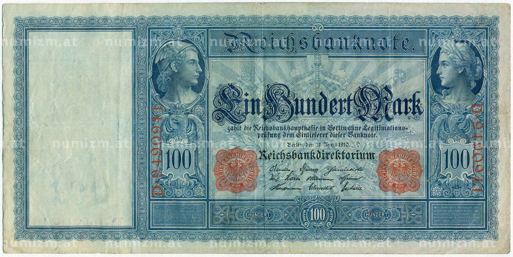Купить 100 марок 1910 года Германия (Красные номера и печати) по привлекательной цене можно в нашем интернет-магазине — Вам достаточно оформить заказ на сайте. Все монеты, представленные в каталоге, находятся в наличии на нашем складе.