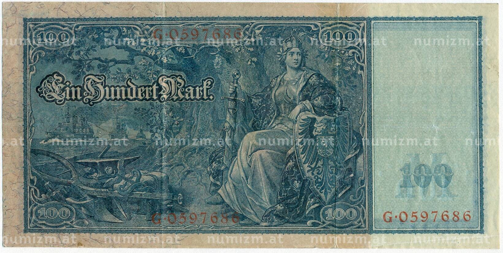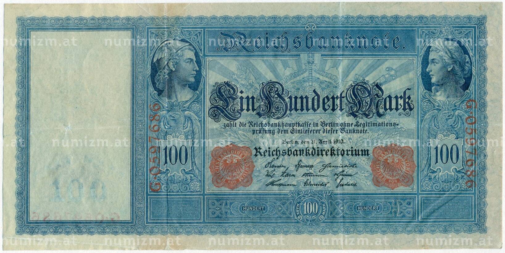 Банкнота 100 марок 1910 года Германия (Красные номера и печати) (Артикул: B2-12359): подробные характеристики, качественные фотографии в высоком разрешении, низкая цена.