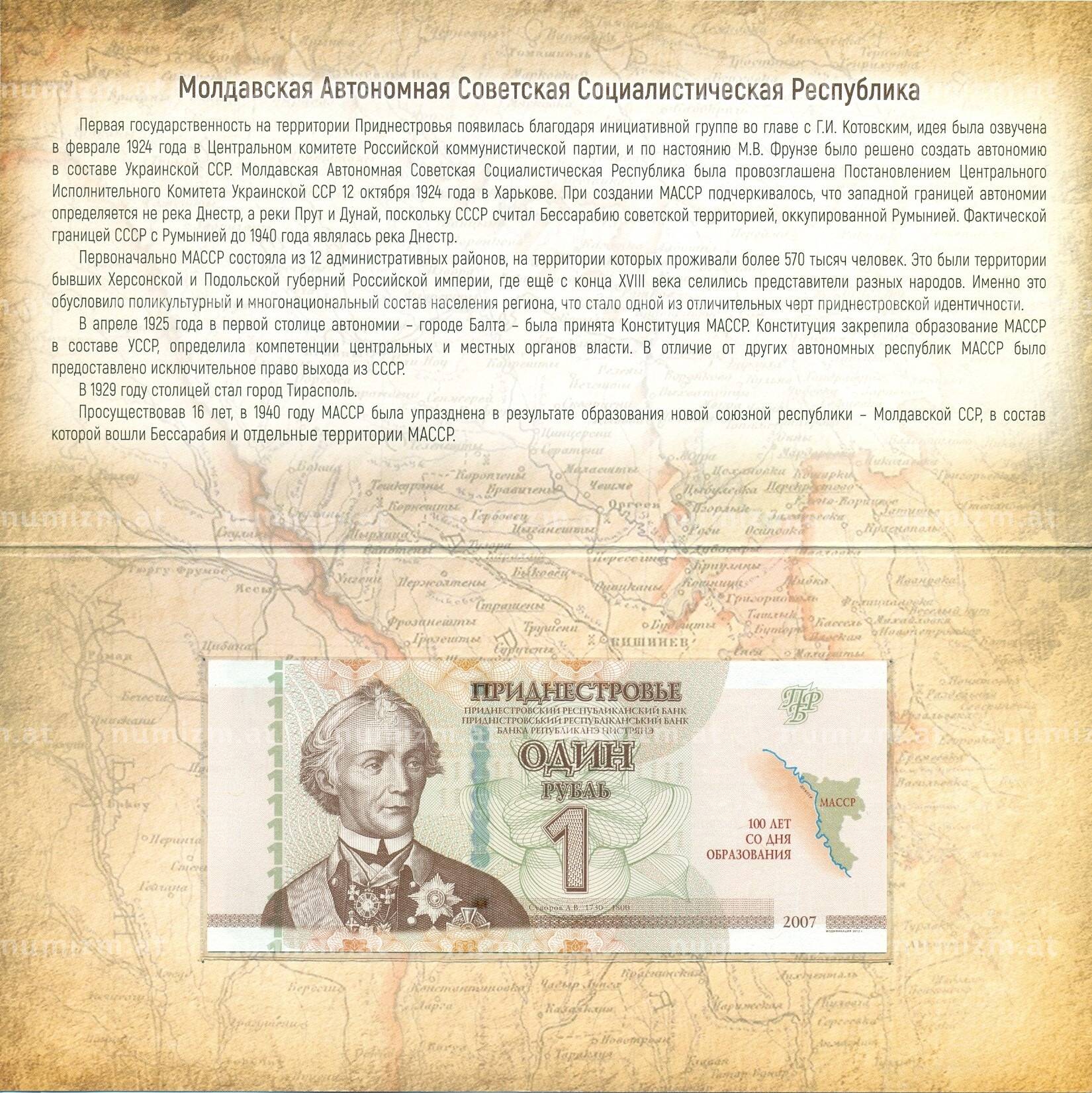 Купить 1 рубль 2024 года Приднестровье «100 лет образованию Молдавской Автономной ССР» (в буклете) по привлекательной цене можно в нашем интернет-магазине — Вам достаточно оформить заказ на сайте. Все монеты, представленные в каталоге, находятся в наличии на нашем складе.