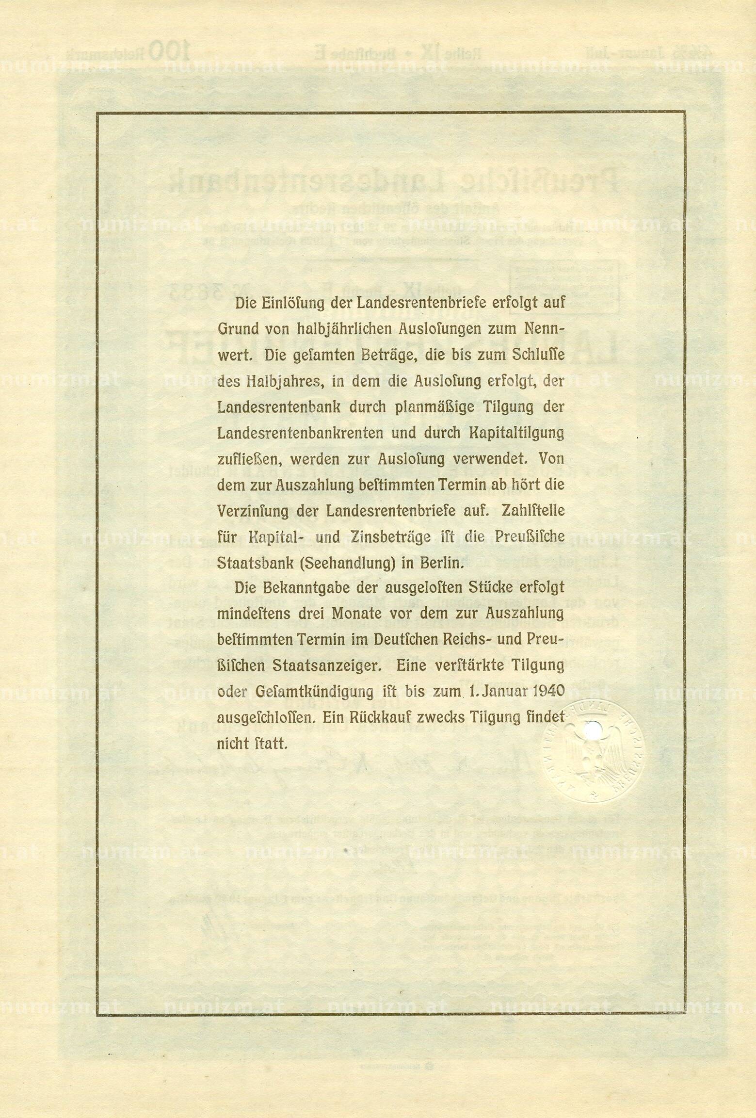 4 1/2% облигация на 100 рейхсмарок 1937 года Германия (Прусский государственный пенсионный банк) (Артикул: B2-13277): подробные характеристики, качественные фотографии в высоком разрешении, низкая цена.