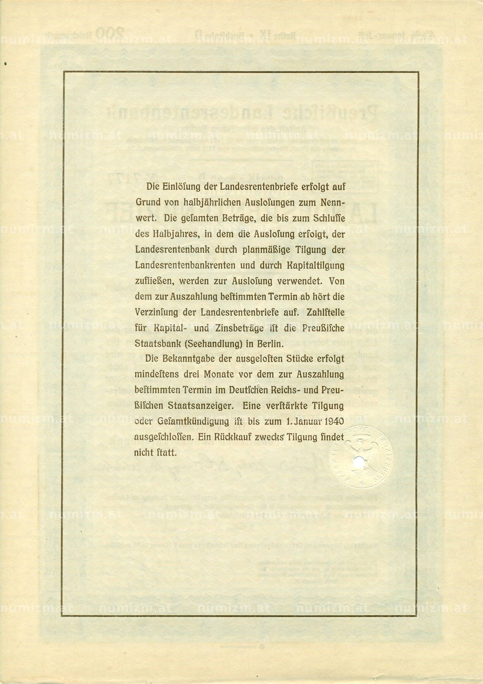 Купить 4 1/2% облигация на 200 рейхсмарок 1937 года Германия (Прусский государственный пенсионный банк) по привлекательной цене можно в нашем интернет-магазине — Вам достаточно оформить заказ на сайте. Все монеты, представленные в каталоге, находятся в наличии на нашем складе.