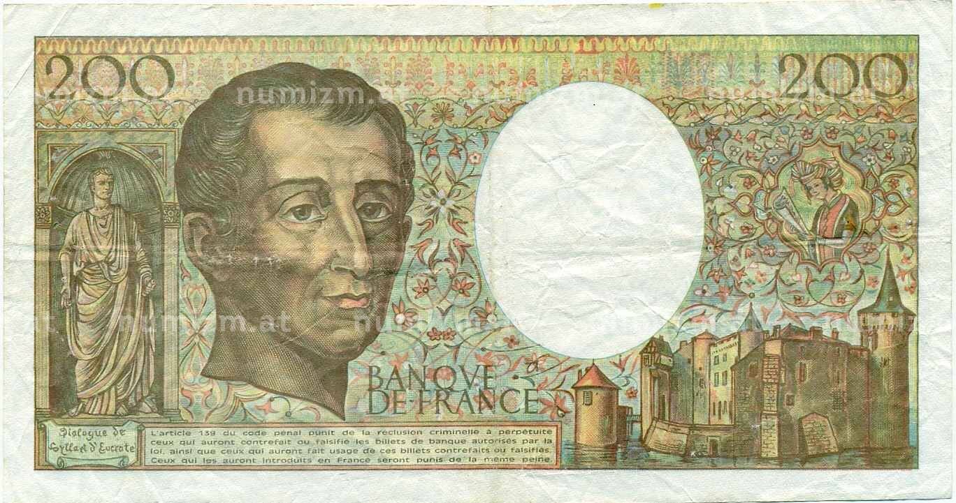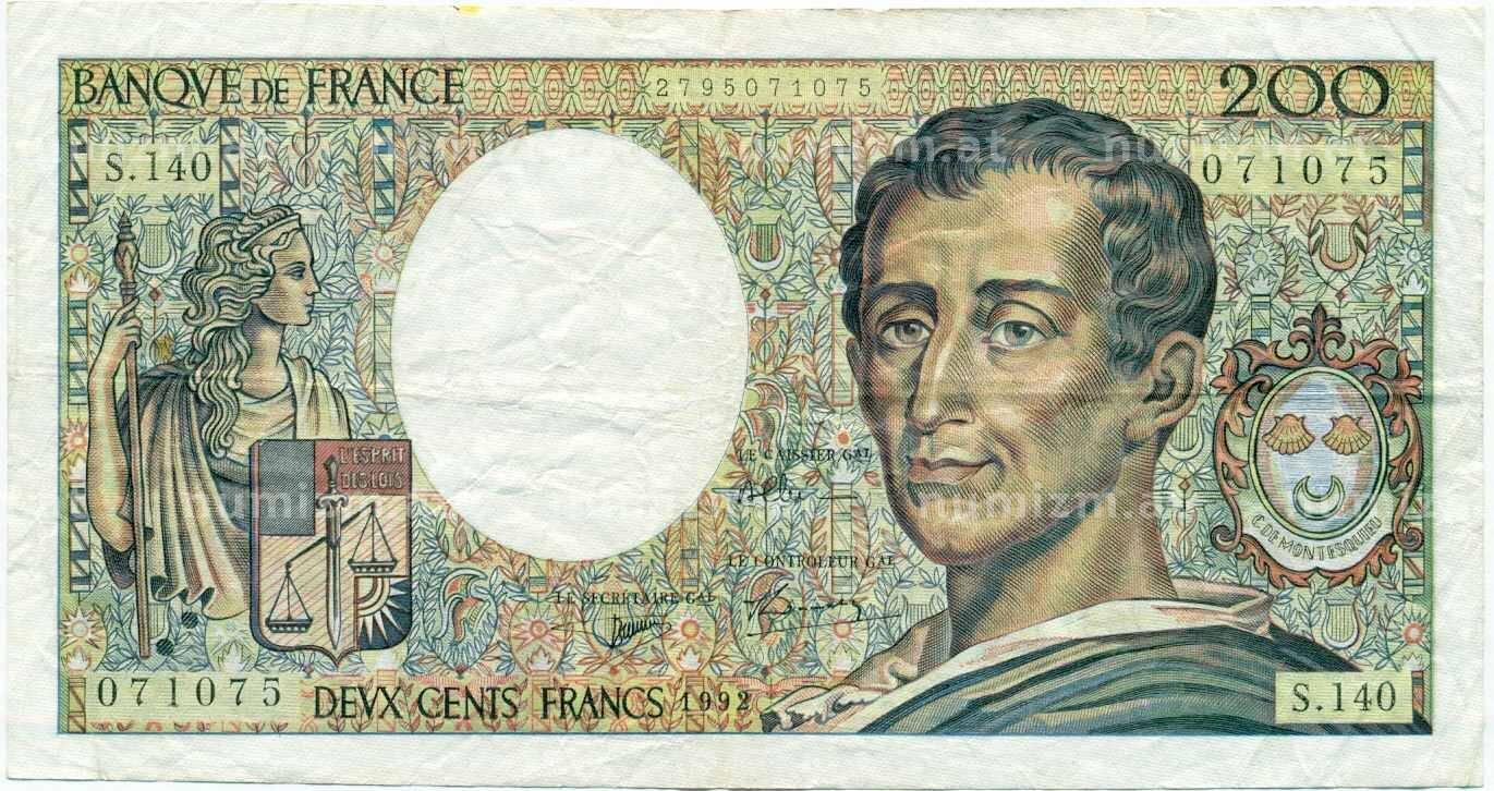 Банкнота 200 франков 1992 года Франция (Артикул: B2-13405): подробные характеристики, качественные фотографии в высоком разрешении, низкая цена.