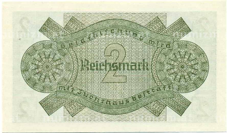 • Банкнота 2 рейхсмарки 1940 года Германия (Для оккупированных территорий) (Артикул: B2-13479) — Фото №1 Банкнота 2 рейхсмарки 1940 года Германия (Для оккупированных территорий) (Артикул: B2-13479) — Фото №2