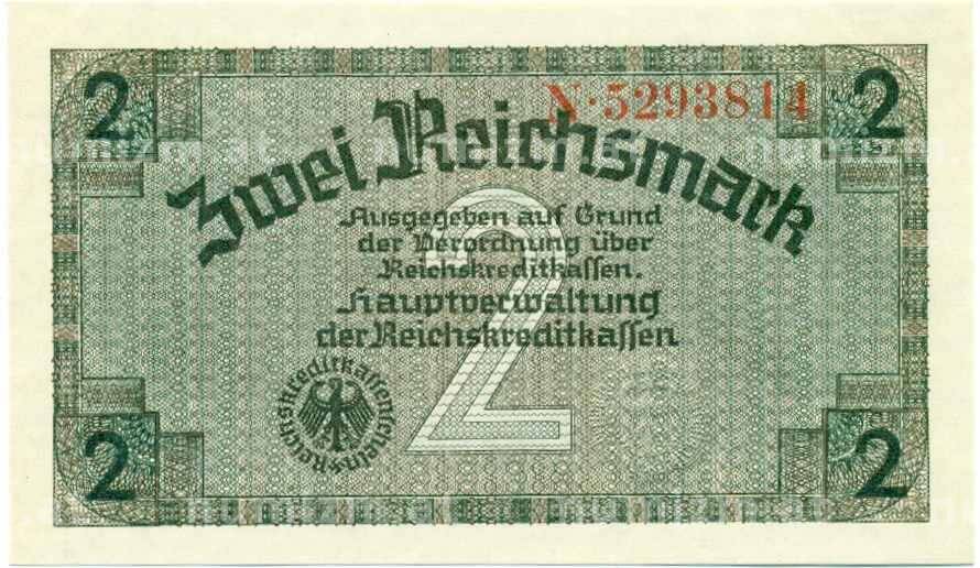 Банкнота 2 рейхсмарки 1940 года Германия (Для оккупированных территорий) (Артикул: B2-13487): подробные характеристики, качественные фотографии в высоком разрешении, низкая цена.