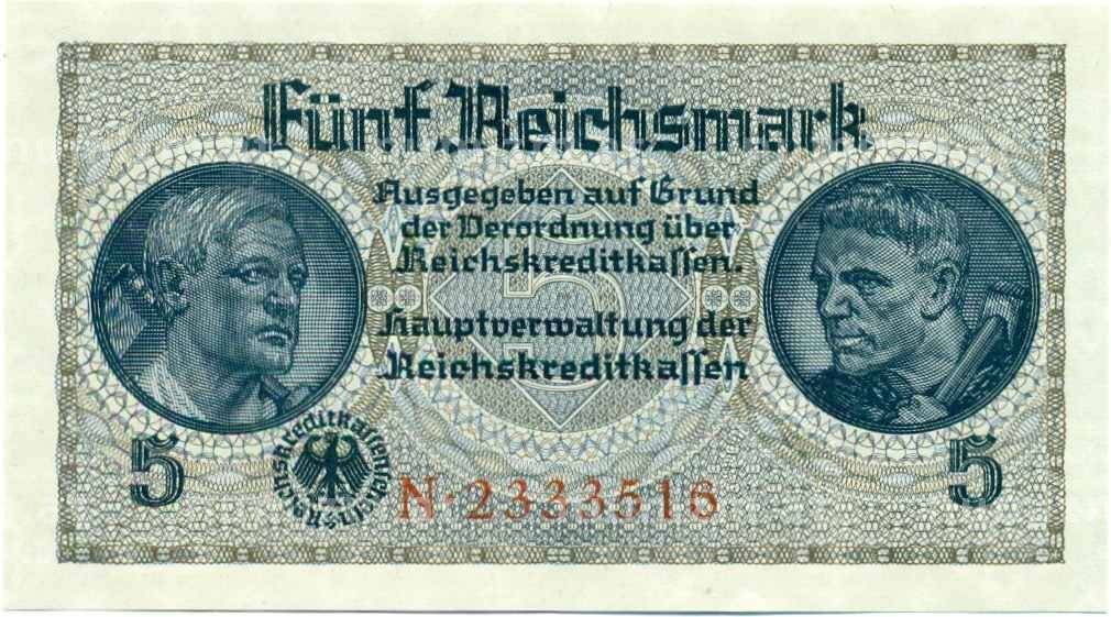 Банкнота 5 рейхсмарок 1940 года Германия (Для окупированных территорий) [Артикул: B2-13494]