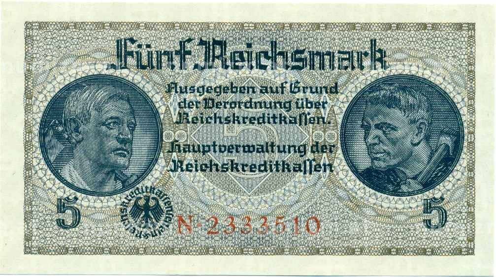 Купить 5 рейхсмарок 1940 года Германия (Для окупированных территорий) по привлекательной цене можно в нашем интернет-магазине — Вам достаточно оформить заказ на сайте. Все монеты, представленные в каталоге, находятся в наличии на нашем складе.