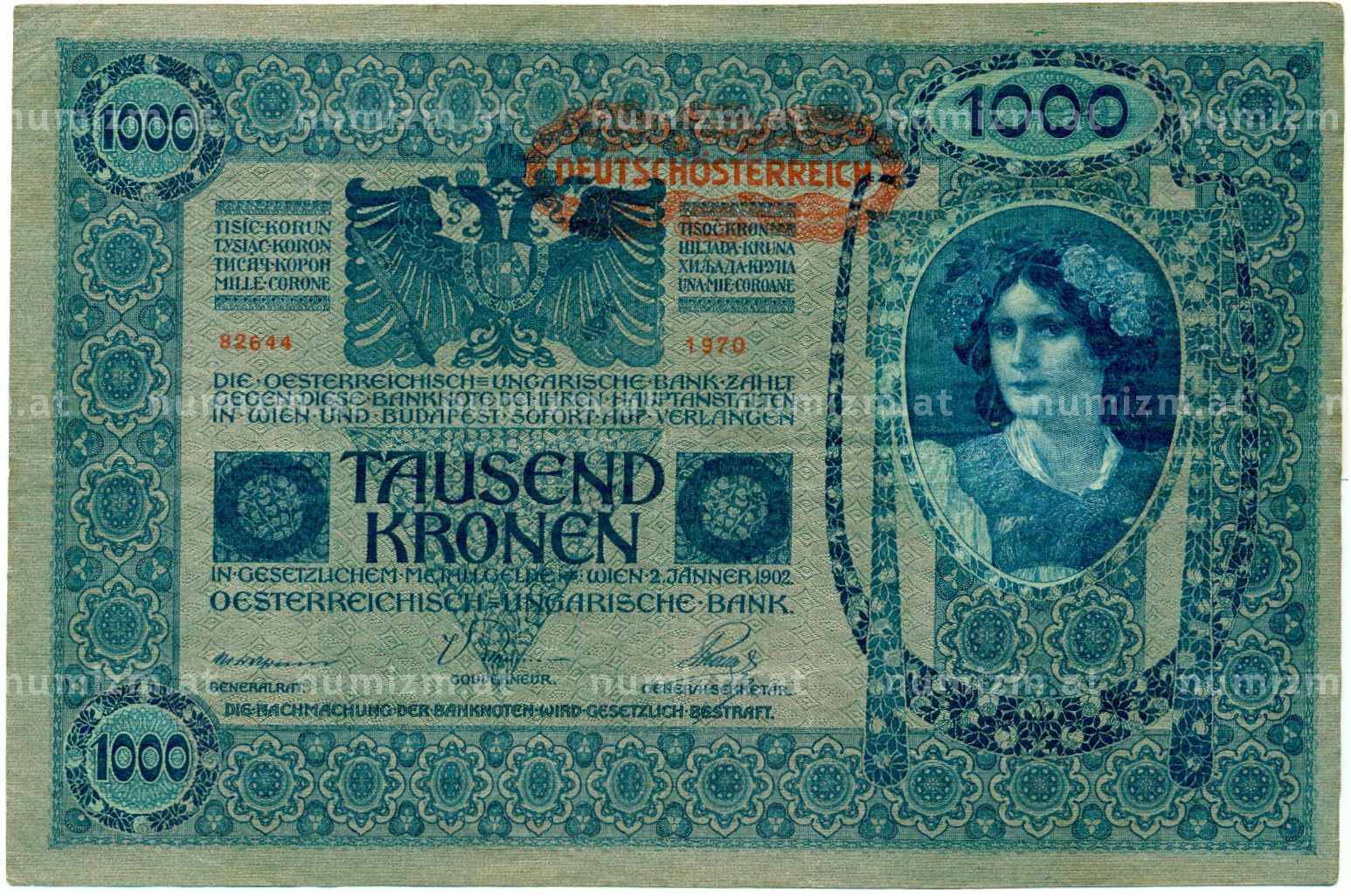 Банкнота 1000 крон 1919 года Австрия (Надпечатка на 1000 крон 1902 года) (Артикул: B2-13519): подробные характеристики, качественные фотографии в высоком разрешении, низкая цена.