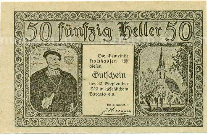 Купить 50 геллеров 1920 года Австрия — Коммуна Хольцхаузен (Нотгельд) по привлекательной цене можно в нашем интернет-магазине — Вам достаточно оформить заказ на сайте. Все монеты, представленные в каталоге, находятся в наличии на нашем складе.