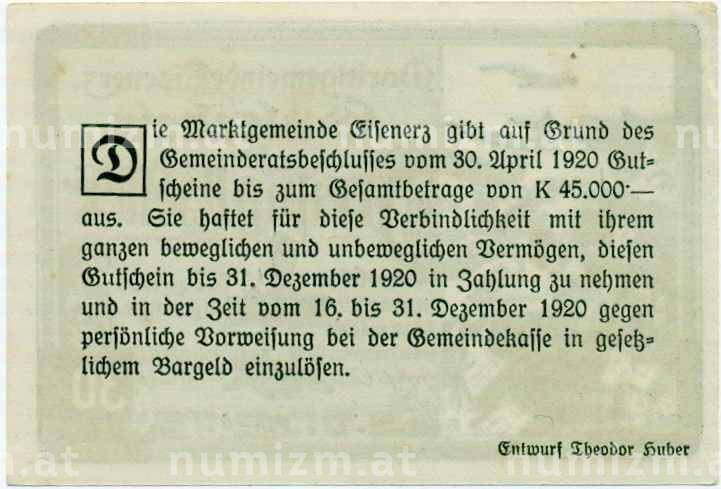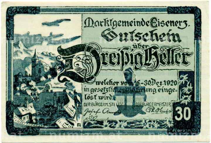 Купить 30 геллеров 1920 года Австрия — Айзенэрц (Нотгельд) по привлекательной цене можно в нашем интернет-магазине — Вам достаточно оформить заказ на сайте. Все монеты, представленные в каталоге, находятся в наличии на нашем складе.