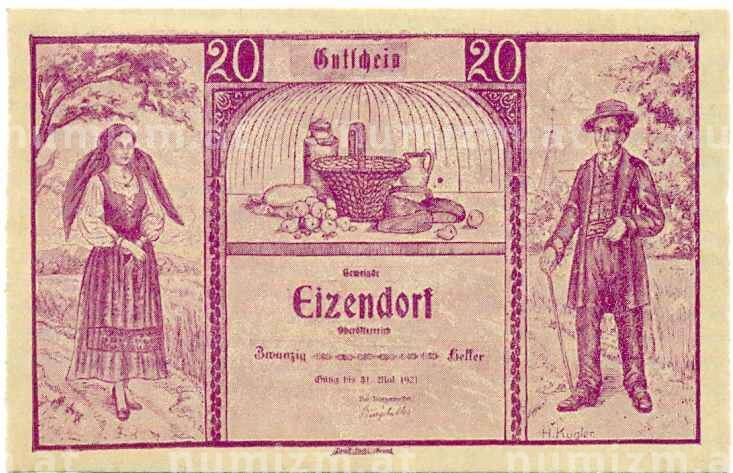 Купить 20 геллеров 1920 года Австрия — Коммуна Айзендорф (Нотгельд) по привлекательной цене можно в нашем интернет-магазине — Вам достаточно оформить заказ на сайте. Все монеты, представленные в каталоге, находятся в наличии на нашем складе.