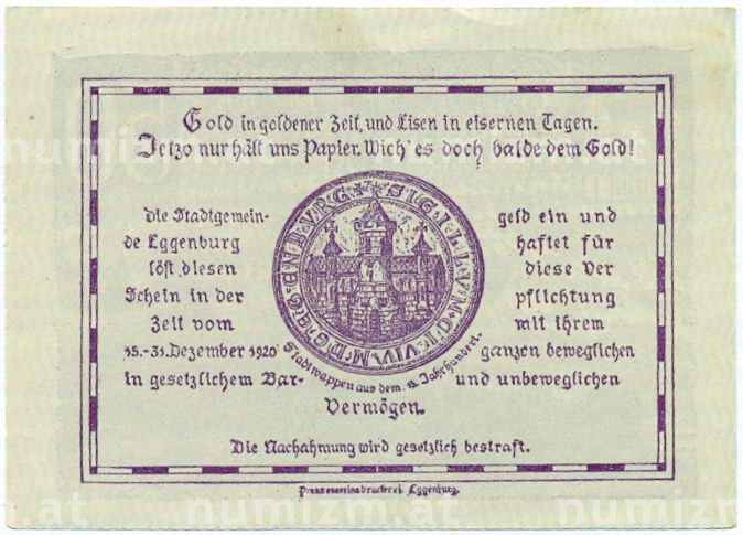 Купить 50 геллеров 1920 года Австрия — Эггенбург (Нотгельд) по привлекательной цене можно в нашем интернет-магазине — Вам достаточно оформить заказ на сайте. Все монеты, представленные в каталоге, находятся в наличии на нашем складе.