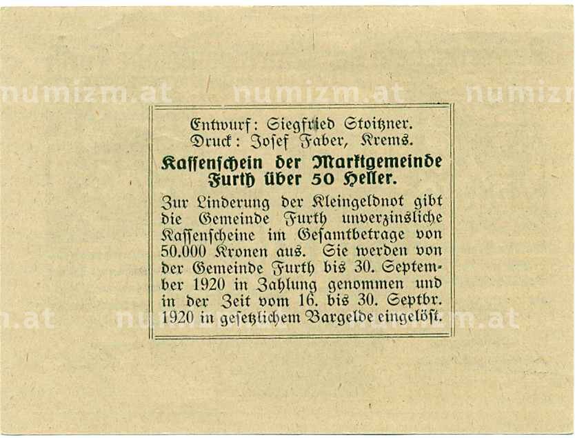 Купить 50 геллеров 1920 года Австрия — Фюрт (Нотгельд) по привлекательной цене можно в нашем интернет-магазине — Вам достаточно оформить заказ на сайте. Все монеты, представленные в каталоге, находятся в наличии на нашем складе.