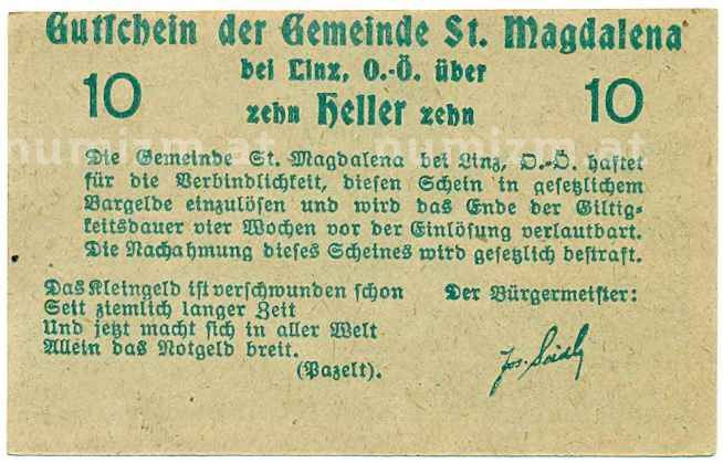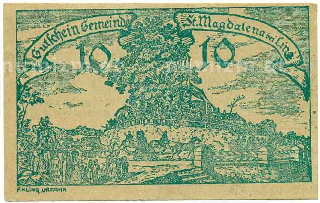 Купить 10 геллеров 1920 года Австрия — Санкт-Магдалена (Нотгельд) по привлекательной цене можно в нашем интернет-магазине — Вам достаточно оформить заказ на сайте. Все монеты, представленные в каталоге, находятся в наличии на нашем складе.