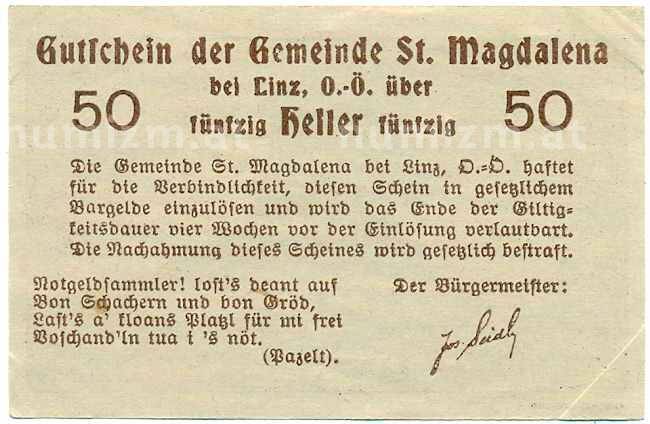 Купить 50 геллеров 1920 года Австрия — Санкт-Магдалена (Нотгельд) по привлекательной цене можно в нашем интернет-магазине — Вам достаточно оформить заказ на сайте. Все монеты, представленные в каталоге, находятся в наличии на нашем складе.