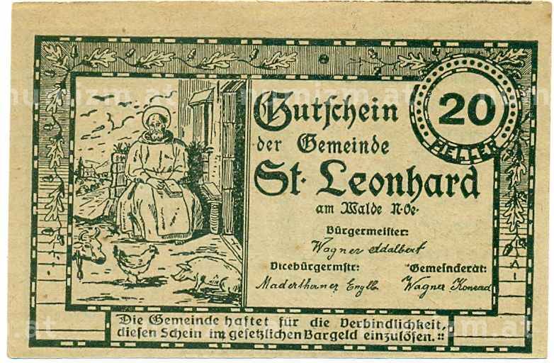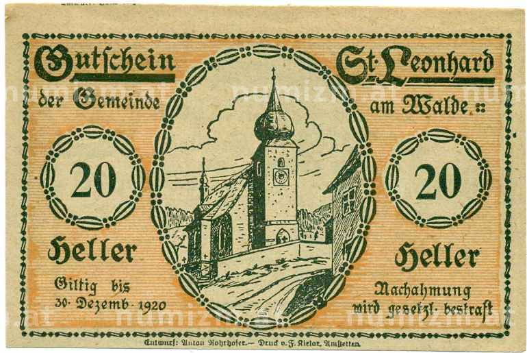 Купить 20 геллеров 1920 года Австрия — Санкта Леонард Ам Вальде (Нотгельд) по привлекательной цене можно в нашем интернет-магазине — Вам достаточно оформить заказ на сайте. Все монеты, представленные в каталоге, находятся в наличии на нашем складе.