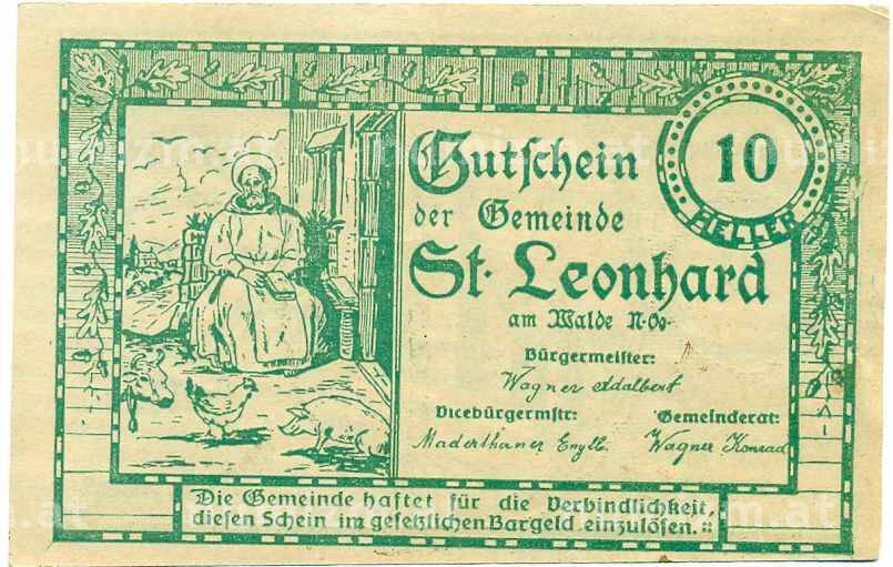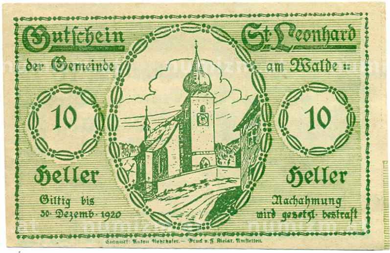 Купить 10 геллеров 1920 года Австрия — Санкта Леонард Ам Вальде (Нотгельд) по привлекательной цене можно в нашем интернет-магазине — Вам достаточно оформить заказ на сайте. Все монеты, представленные в каталоге, находятся в наличии на нашем складе.