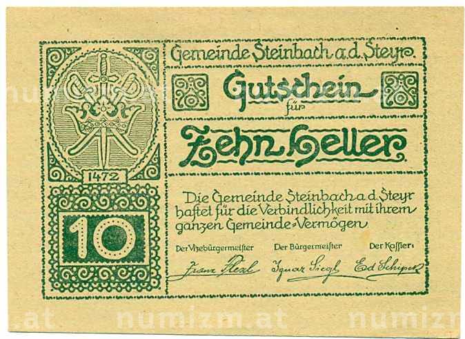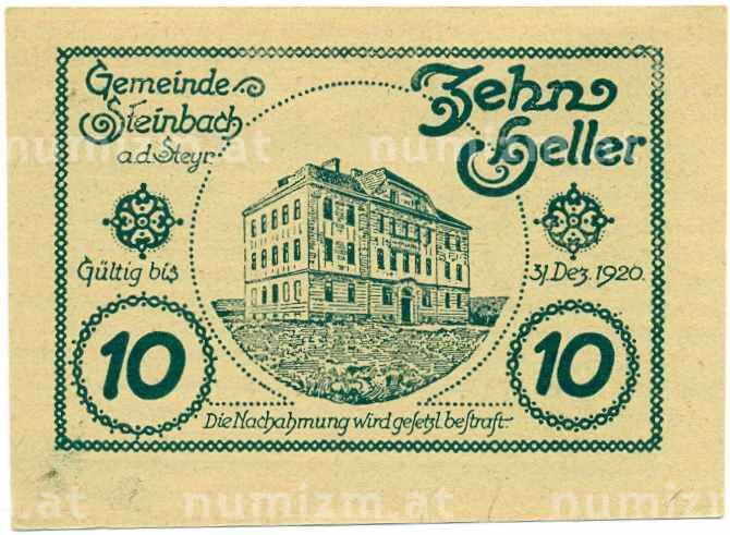 20.01.2025Интернет магазин «Нумизмат» предлагает приобрести 10 геллеров 1920 года Австрия — Коммуна Штайнбах-ан-дер-Штайр (Нотгельд).