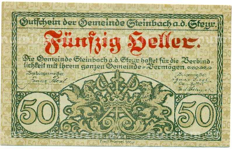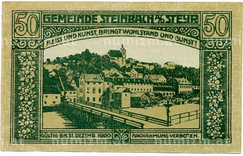 Купить 50 геллеров 1920 года Австрия — Коммуна Штайнбах-ан-дер-Штайр (Нотгельд) по привлекательной цене можно в нашем интернет-магазине — Вам достаточно оформить заказ на сайте. Все монеты, представленные в каталоге, находятся в наличии на нашем складе.