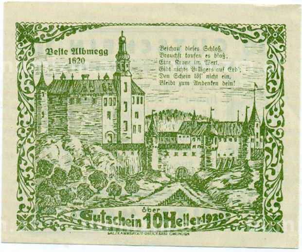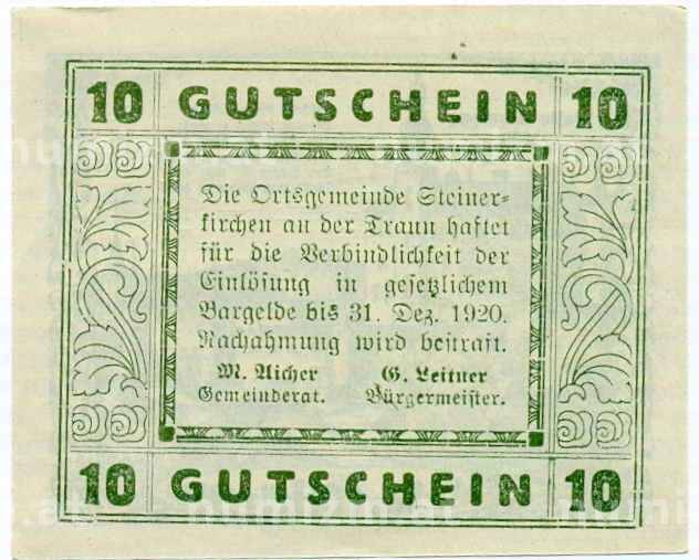 Купить 10 геллеров 1920 года Австрия — Коммуна Штайнеркирхен-на-Трауне (Нотгельд) по привлекательной цене можно в нашем интернет-магазине — Вам достаточно оформить заказ на сайте. Все монеты, представленные в каталоге, находятся в наличии на нашем складе.