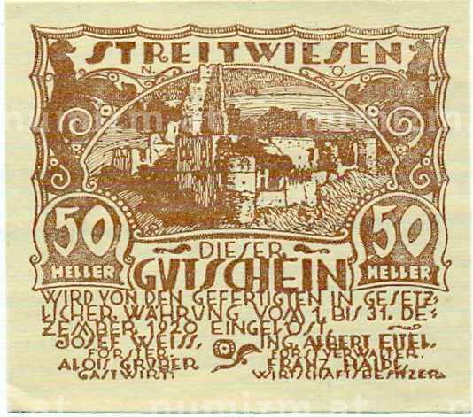 Купить 50 геллеров 1920 года Австрия — Штрайтвизен (Нотгельд) по привлекательной цене можно в нашем интернет-магазине — Вам достаточно оформить заказ на сайте. Все монеты, представленные в каталоге, находятся в наличии на нашем складе.
