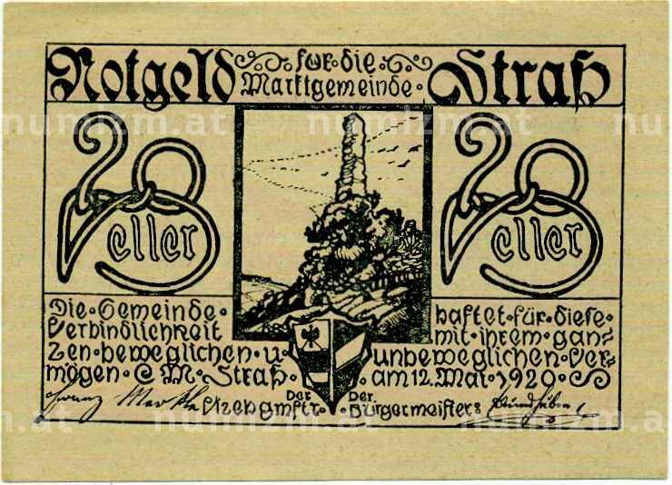 Купить 20 геллеров 1920 года Австрия — Коммуна Штрас-ин-Штайермарк (Нотгельд) по привлекательной цене можно в нашем интернет-магазине — Вам достаточно оформить заказ на сайте. Все монеты, представленные в каталоге, находятся в наличии на нашем складе.