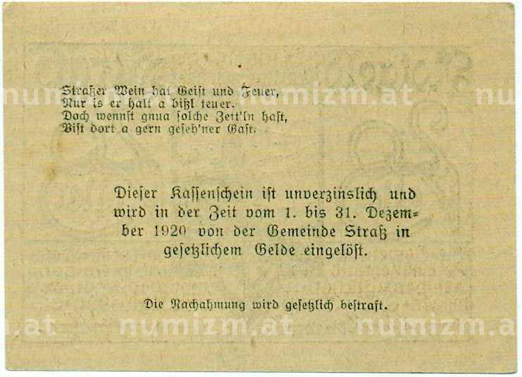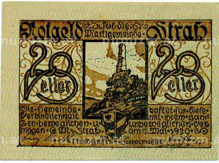 Банкнота 20 геллеров 1920 года Австрия — Коммуна Штрас-ин-Штайермарк (Нотгельд) (Артикул: B2-14041): подробные характеристики, качественные фотографии в высоком разрешении, низкая цена.