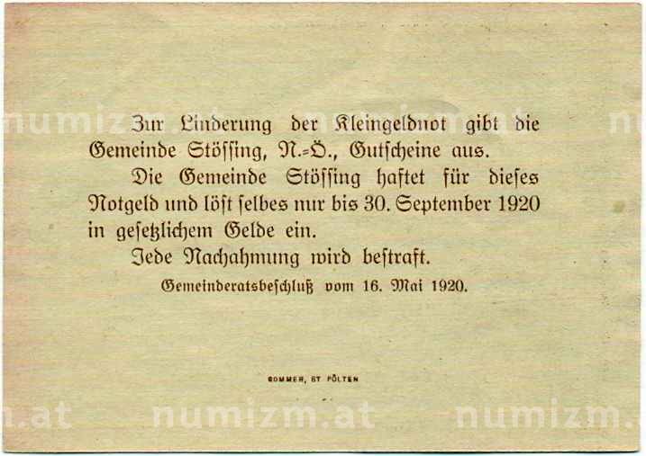 Купить 10 геллеров 1920 года Австрия — Штессинг (Нотгельд) по привлекательной цене можно в нашем интернет-магазине — Вам достаточно оформить заказ на сайте. Все монеты, представленные в каталоге, находятся в наличии на нашем складе.