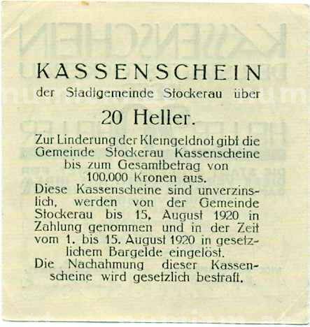 Купить 20 геллеров 1920 года Австрия — Штоккерау (Нотгельд) по привлекательной цене можно в нашем интернет-магазине — Вам достаточно оформить заказ на сайте. Все монеты, представленные в каталоге, находятся в наличии на нашем складе.