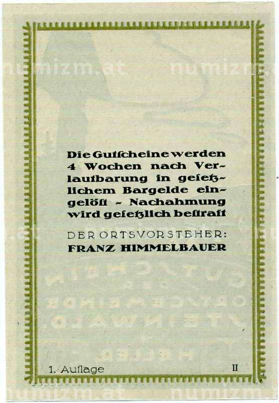 Купить 30 геллеров 1920 года Австрия — Штайнвальд (Нотгельд) по привлекательной цене можно в нашем интернет-магазине — Вам достаточно оформить заказ на сайте. Все монеты, представленные в каталоге, находятся в наличии на нашем складе.