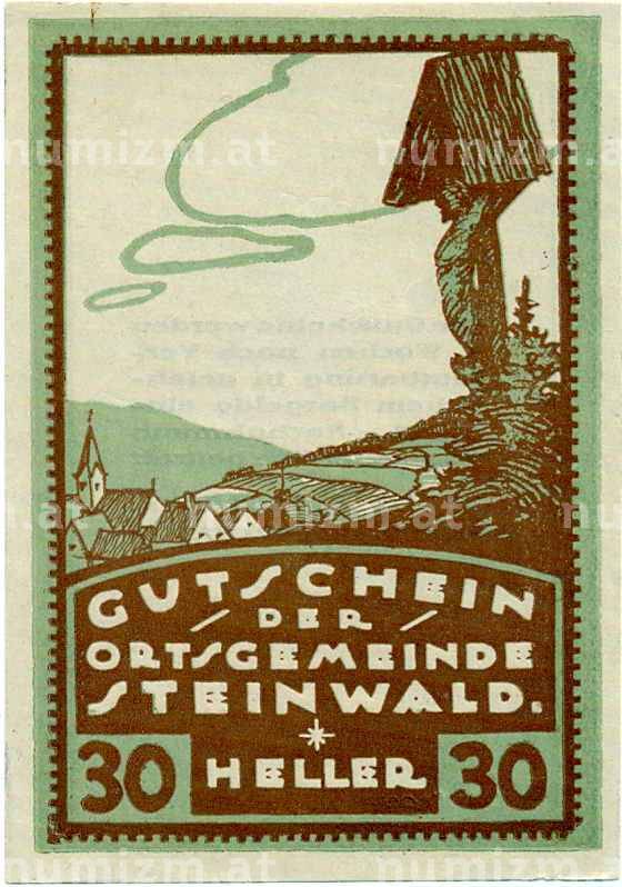 Купить 30 геллеров 1920 года Австрия — Штайнвальд (Нотгельд) по привлекательной цене можно в нашем интернет-магазине — Вам достаточно оформить заказ на сайте. Все монеты, представленные в каталоге, находятся в наличии на нашем складе.