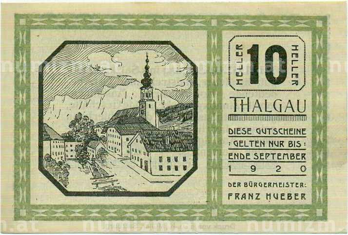Купить 10 геллеров 1920 года Австрия — Коммуна Тальгау (Нотгельд) по привлекательной цене можно в нашем интернет-магазине — Вам достаточно оформить заказ на сайте. Все монеты, представленные в каталоге, находятся в наличии на нашем складе.