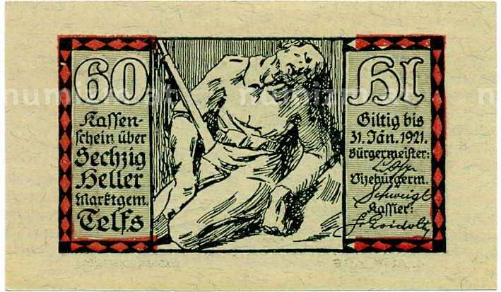 Купить 60 геллеров 1920 года Австрия — Коммуна Тельфс (Нотгельд) по привлекательной цене можно в нашем интернет-магазине — Вам достаточно оформить заказ на сайте. Все монеты, представленные в каталоге, находятся в наличии на нашем складе.