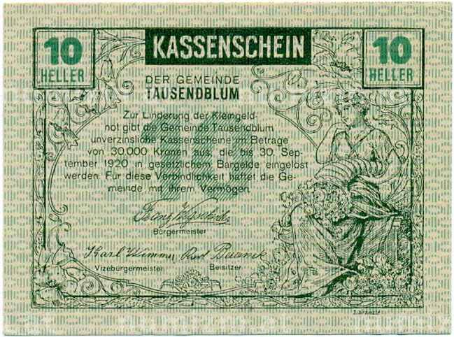 Купить 10 геллеров 1920 года Австрия — Таусендблум (Нотгельд) по привлекательной цене можно в нашем интернет-магазине — Вам достаточно оформить заказ на сайте. Все монеты, представленные в каталоге, находятся в наличии на нашем складе.