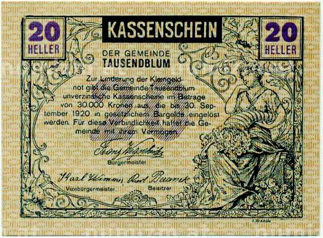 Купить 20 геллеров 1920 года Австрия — Таусендблум (Нотгельд) по привлекательной цене можно в нашем интернет-магазине — Вам достаточно оформить заказ на сайте. Все монеты, представленные в каталоге, находятся в наличии на нашем складе.