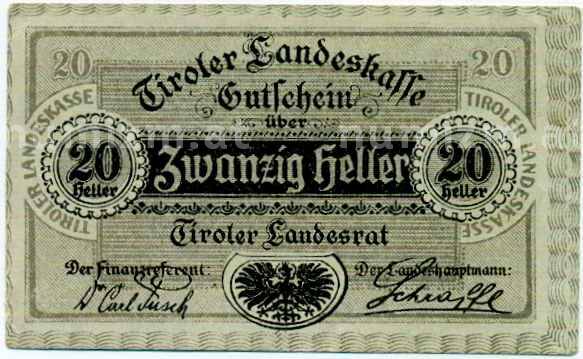 Купить 20 геллеров 1920 года Австрия — Тироль (Нотгельд) по привлекательной цене можно в нашем интернет-магазине — Вам достаточно оформить заказ на сайте. Все монеты, представленные в каталоге, находятся в наличии на нашем складе.