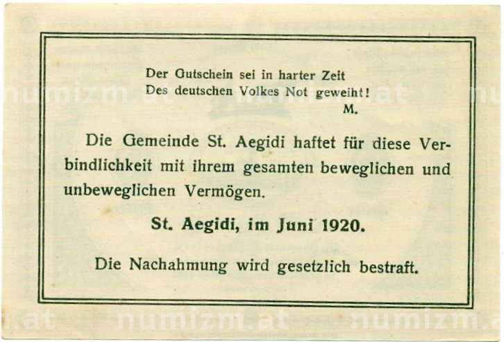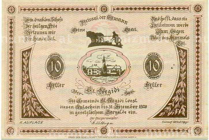 Купить 10 геллеров 1920 года Австрия — Коммуна Санкт-Эгиди (Нотгельд) по привлекательной цене можно в нашем интернет-магазине — Вам достаточно оформить заказ на сайте. Все монеты, представленные в каталоге, находятся в наличии на нашем складе.