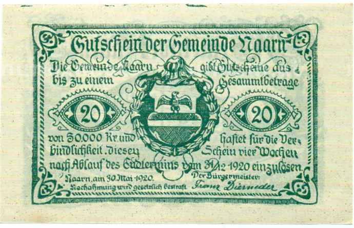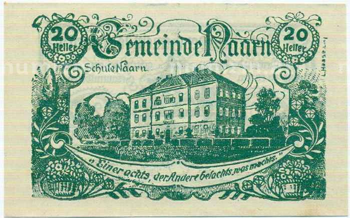 Купить 20 геллеров 1920 года Австрия — Коммуна Нарн-им-Махланде (Нотгельд) по привлекательной цене можно в нашем интернет-магазине — Вам достаточно оформить заказ на сайте. Все монеты, представленные в каталоге, находятся в наличии на нашем складе.