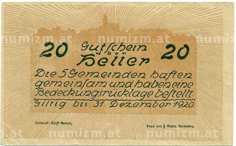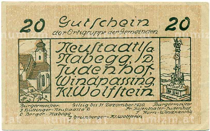 Купить 20 геллеров 1920 года Австрия — Коммуна Нойштадтль-на-Дунае (Нотгельд) по привлекательной цене можно в нашем интернет-магазине — Вам достаточно оформить заказ на сайте. Все монеты, представленные в каталоге, находятся в наличии на нашем складе.