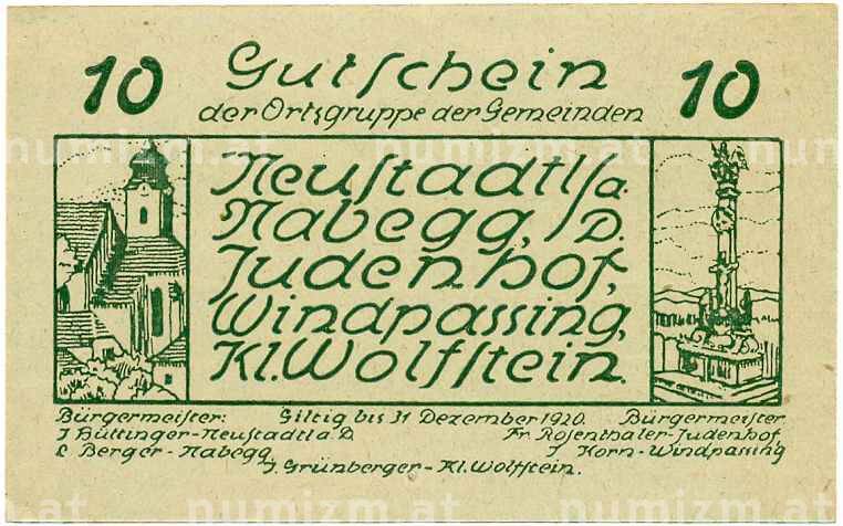 Купить 10 геллеров 1920 года Австрия — Коммуна Нойштадтль-на-Дунае (Нотгельд) по привлекательной цене можно в нашем интернет-магазине — Вам достаточно оформить заказ на сайте. Все монеты, представленные в каталоге, находятся в наличии на нашем складе.