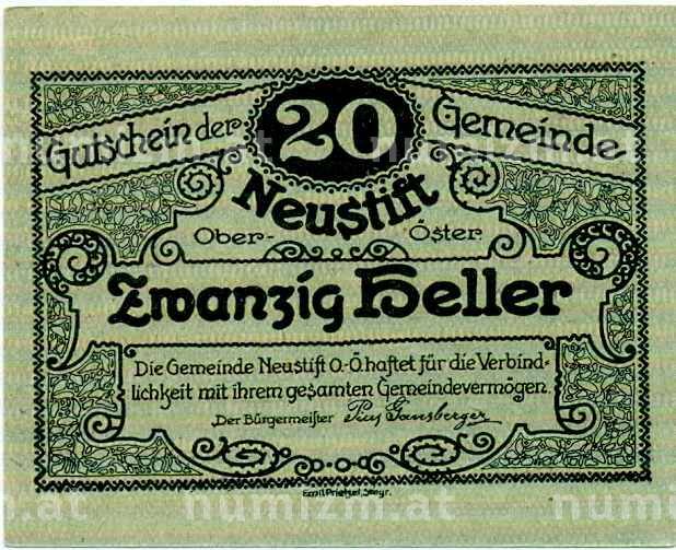 Купить 20 геллеров 1920 года Австрия — Нойштифт (Нотгельд) по привлекательной цене можно в нашем интернет-магазине — Вам достаточно оформить заказ на сайте. Все монеты, представленные в каталоге, находятся в наличии на нашем складе.