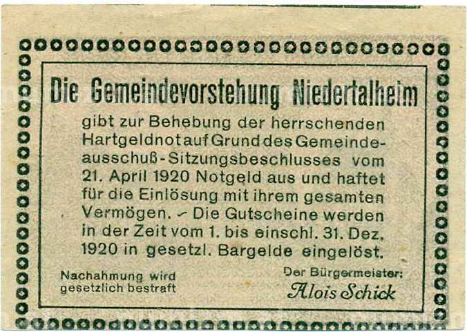 Купить 50 геллеров 1920 года Австрия — Нидерергайм (Нотгельд) по привлекательной цене можно в нашем интернет-магазине — Вам достаточно оформить заказ на сайте. Все монеты, представленные в каталоге, находятся в наличии на нашем складе.