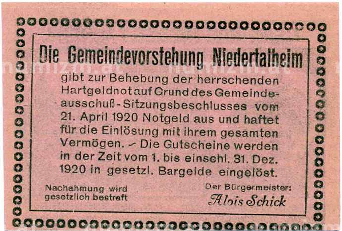 Купить 50 геллеров 1920 года Австрия — Нидерергайм (Нотгельд) по привлекательной цене можно в нашем интернет-магазине — Вам достаточно оформить заказ на сайте. Все монеты, представленные в каталоге, находятся в наличии на нашем складе.