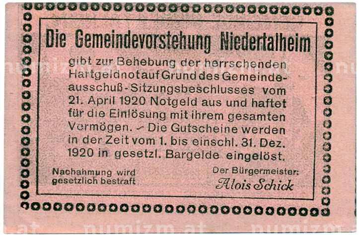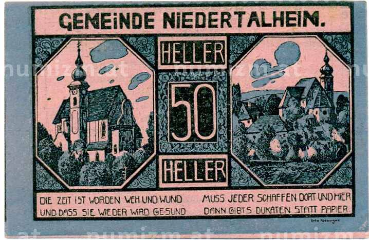 Банкнота 50 геллеров 1920 года Австрия — Нидерергайм (Нотгельд) (Артикул: B2-14268): подробные характеристики, качественные фотографии в высоком разрешении, низкая цена.