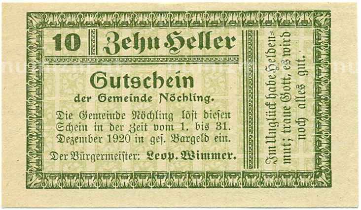 Купить 10 геллеров 1920 года Австрия — Коммуна Нехлинг (Нотгельд) по привлекательной цене можно в нашем интернет-магазине — Вам достаточно оформить заказ на сайте. Все монеты, представленные в каталоге, находятся в наличии на нашем складе.