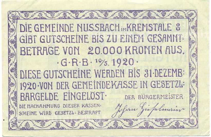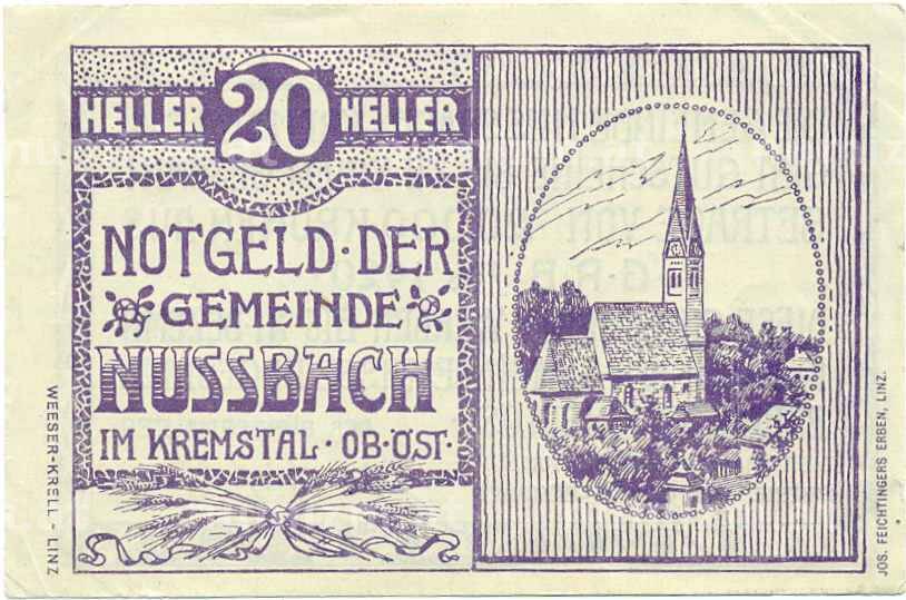 Купить 20 геллеров 1920 года Австрия — Коммуна Нусбах (Нотгельд) по привлекательной цене можно в нашем интернет-магазине — Вам достаточно оформить заказ на сайте. Все монеты, представленные в каталоге, находятся в наличии на нашем складе.