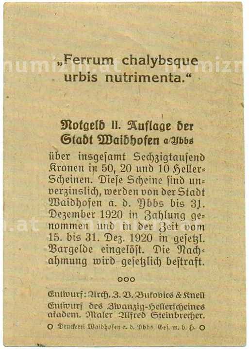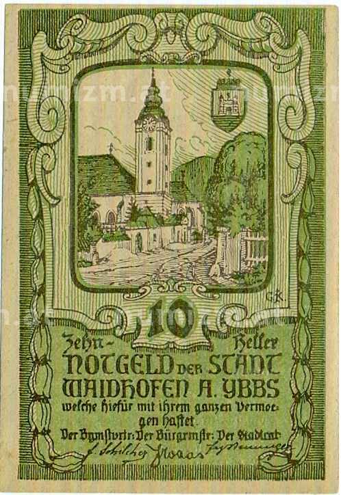 Купить 10 геллеров 1920 года Австрия — Вайдхофен-ан-дер-Ибс (Нотгельд) по привлекательной цене можно в нашем интернет-магазине — Вам достаточно оформить заказ на сайте. Все монеты, представленные в каталоге, находятся в наличии на нашем складе.