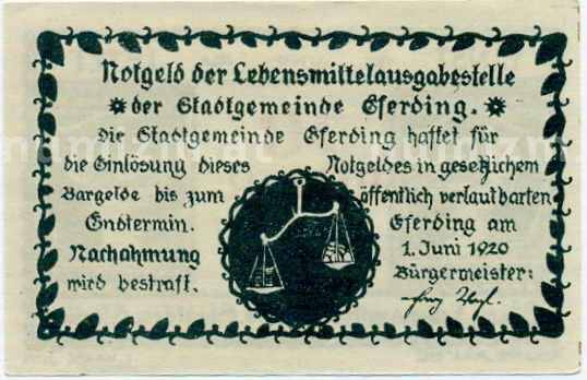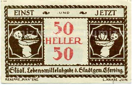Банкнота 50 геллеров 1920 года Австрия — Эфердинг (Нотгельд) (Артикул: B2-14499): подробные характеристики, качественные фотографии в высоком разрешении, низкая цена.