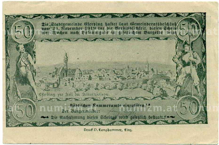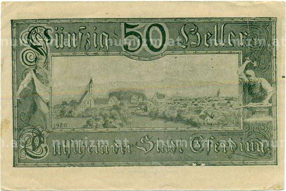 Банкнота 50 геллеров 1920 года Австрия — Эфердинг (Нотгельд) (Артикул: B2-14516): подробные характеристики, качественные фотографии в высоком разрешении, низкая цена.