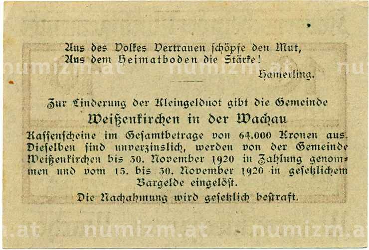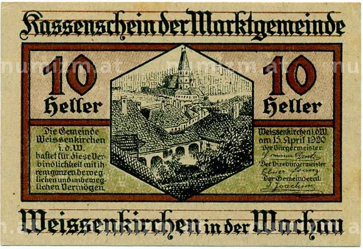 Купить 10 геллеров 1920 года Австрия — Коммуа Вайсенкирхен-ин-дер-Вахау (Нотгельд) по привлекательной цене можно в нашем интернет-магазине — Вам достаточно оформить заказ на сайте. Все монеты, представленные в каталоге, находятся в наличии на нашем складе.