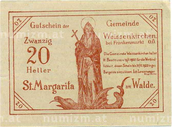 Купить 20 геллеров 1920 года Австрия — Коммуа Вайсенкирхен (Нотгельд) по привлекательной цене можно в нашем интернет-магазине — Вам достаточно оформить заказ на сайте. Все монеты, представленные в каталоге, находятся в наличии на нашем складе.